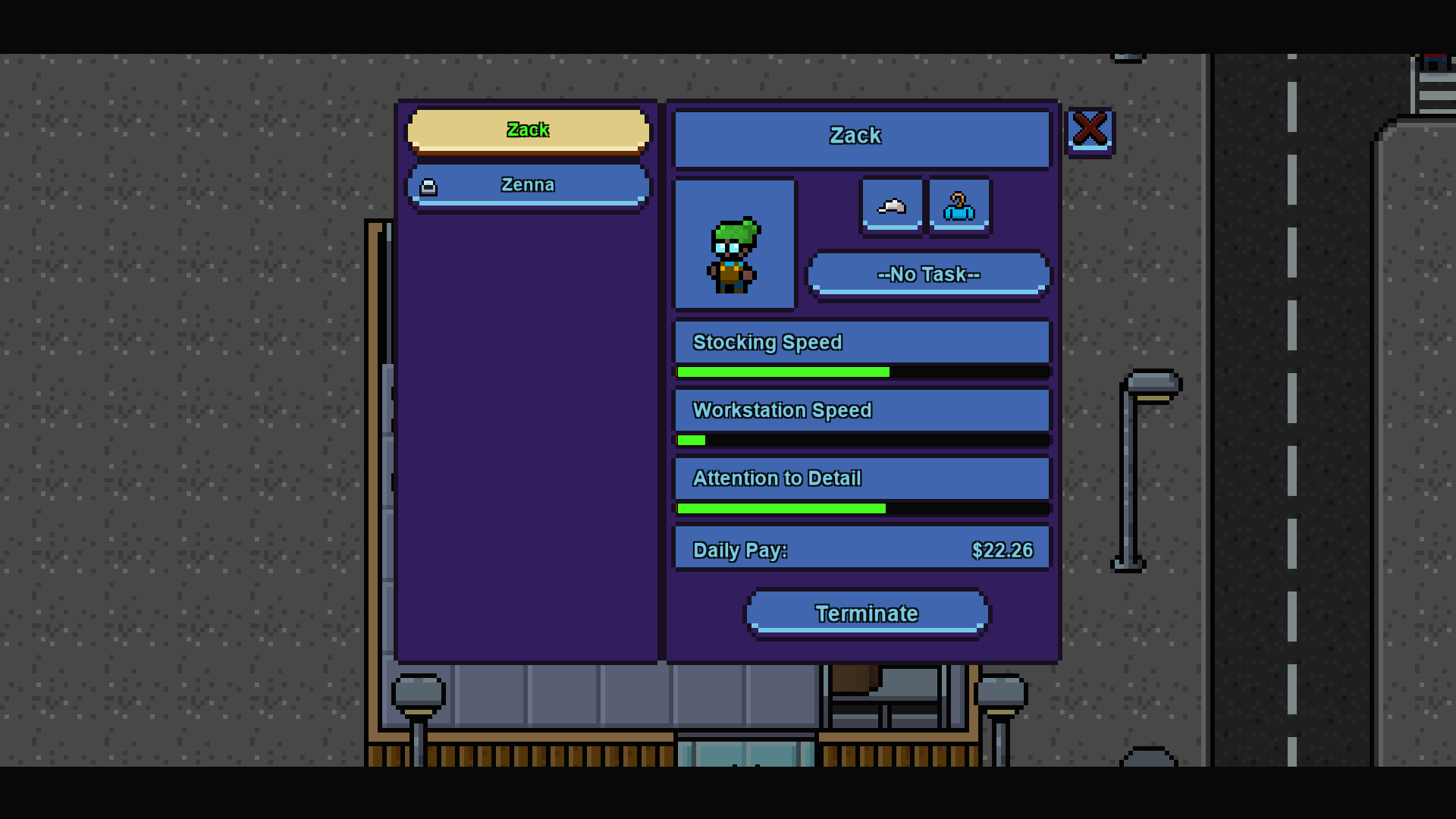 In Pixel Mart, you'll take on the role of a super market super hero. Take control of your store by stocking, cashiering, and moping your way to the top. Sell products ranging from dry goods to produce, and even meats and sweet treats! Manage employees and inventories to keep your store making the big cash. You can even adopt pets to keep you company when the store is slow!